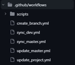 The repository will contain workflows that perform tasks, such as creating a branch and a development project, updating project metadata from the repository, and synchronizing project metadata from project to repository. You will learn about these workflows in the following guide, where you will also learn how to develop a project using Git and workflows.