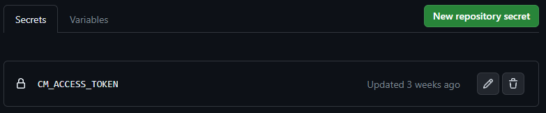 Add CleverMaps access token to the GitHub repository secrets. Name the secret CM_ACCESS_TOKEN and paste the access token. Save the secret.