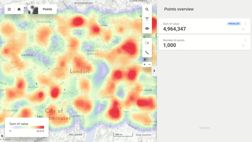 and the rest of the hard work is done by our innovative computational engine packed in a template. In the end, you are presented with an interactive map interface where you naturally see insights of your data.
