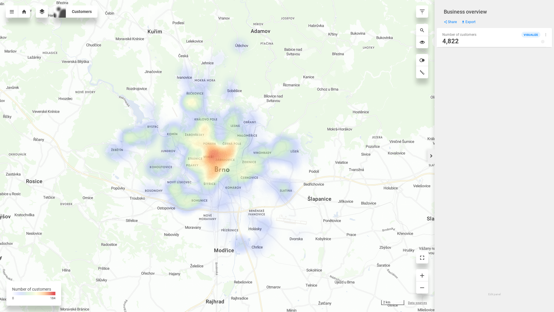 A simple CleverMaps project visualizing your clients' addresses on the map. We'll do that using 2 visualizations - dotmap, and heatmap.