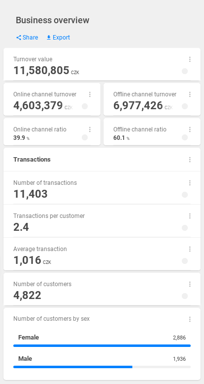 Categories can split the result of an indicator based on a dataset's property. Similar to how we split online and offline transactions earlier - we'll split customers based on sex.