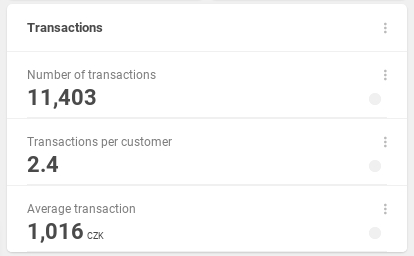 There's no new syntax in the case of transactions_indicator and transactions_metric objects. The transactions_per_customer_metric is a simple fraction. And in average_transaction_metric, we use a new function - function_avg.